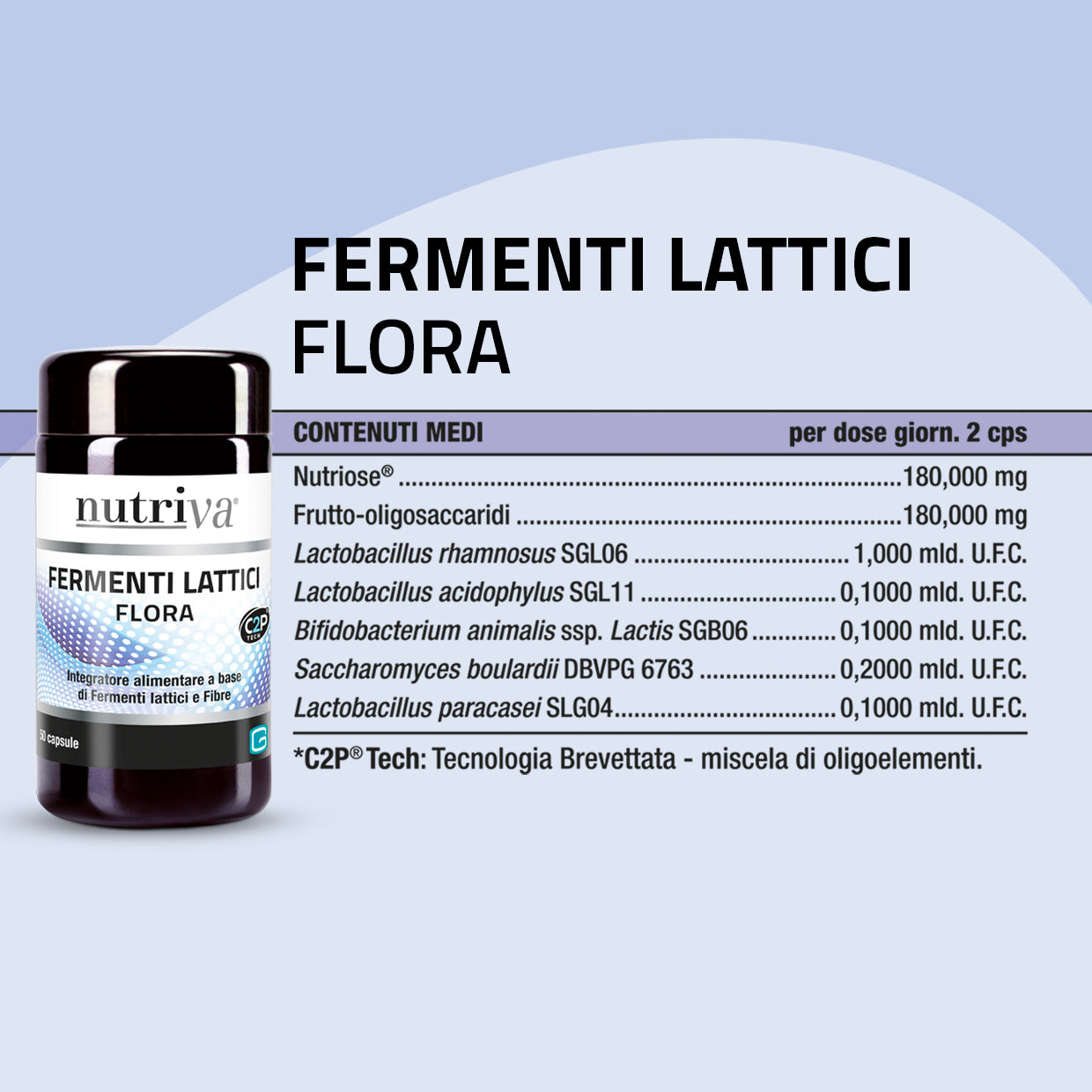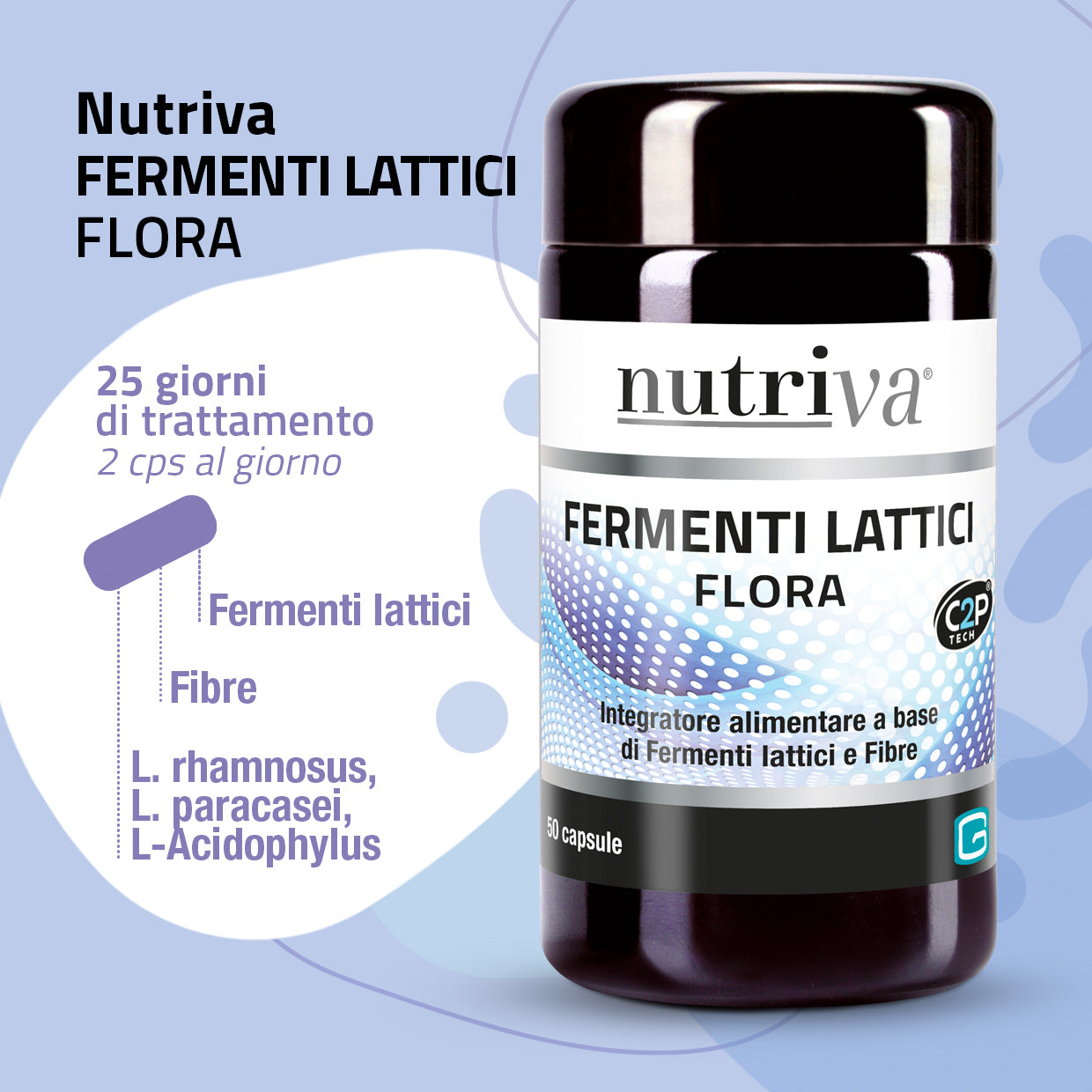 Nutriva Fermenti Lattici Flora è un integratore alimentare che contiene una combinazione di fermenti lattici vivi e fibre prebiotiche, utili per riequilibrare in modo naturale le funzioni e la flora intestinale. Grazie al numero elevato di probiotici vivi e attivi presenti, questo integratore può esercitare un'azione di equilibrio sulla flora intestinale.