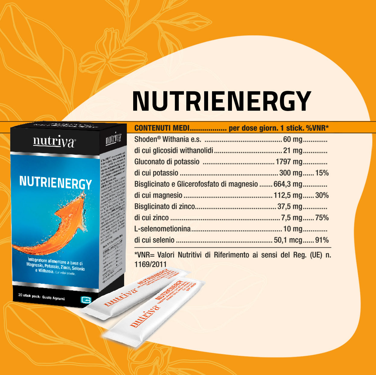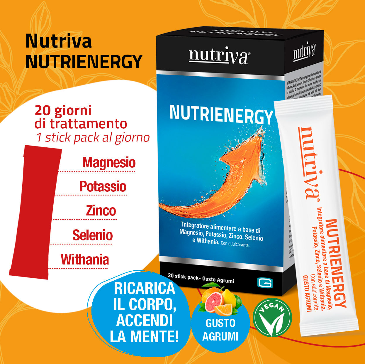 Include Magnesio e Potassio che contribuiscono alla riduzione di stanchezza e affaticamento, al normale metabolismo energetico, all'equilibrio elettrolitico e alla normale funzione muscolare. Il Magnesio supporta anche la funzione psicologica.