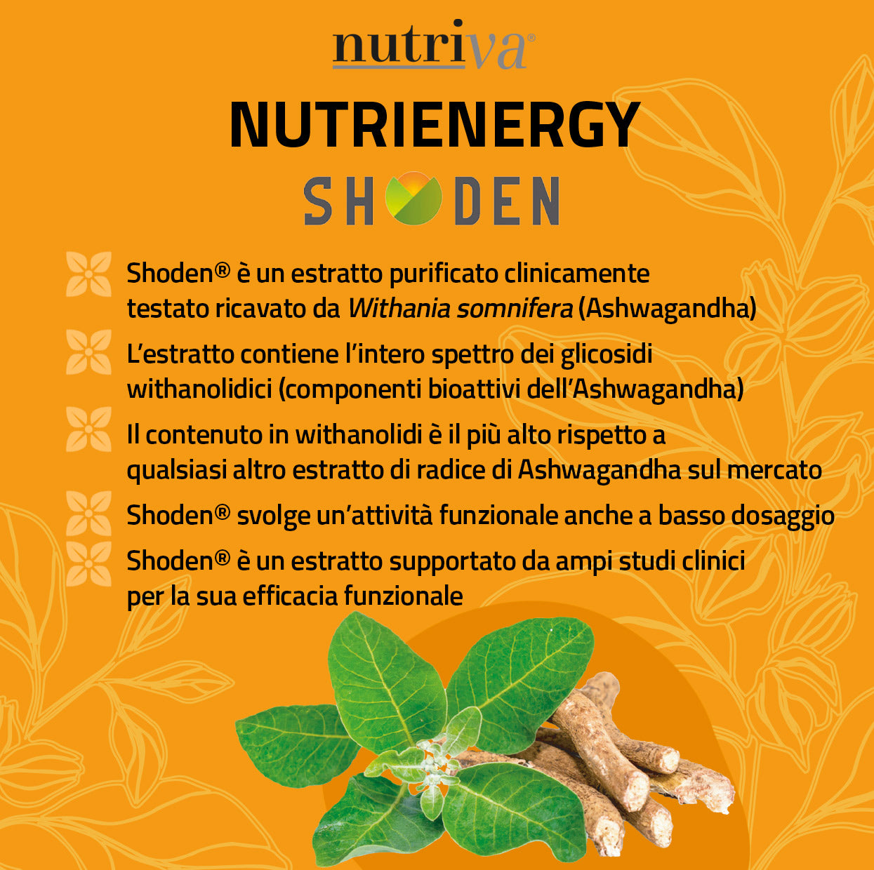 È presente anche il brevetto SHODEN, un estratto purificato e clinicamente testato di Withania somnifera (Ashwagandha), standardizzato ad un alto contenuto (35%) di glicosidi withanolidici. Questa pianta agisce come tonico-adattogeno, utile per la stanchezza fisica e mentale, supportando il rilassamento, il benessere mentale e le naturali difese dell'organismo. Aiuta l'organismo ad adattarsi allo stress e può favorire concentrazione e memoria.