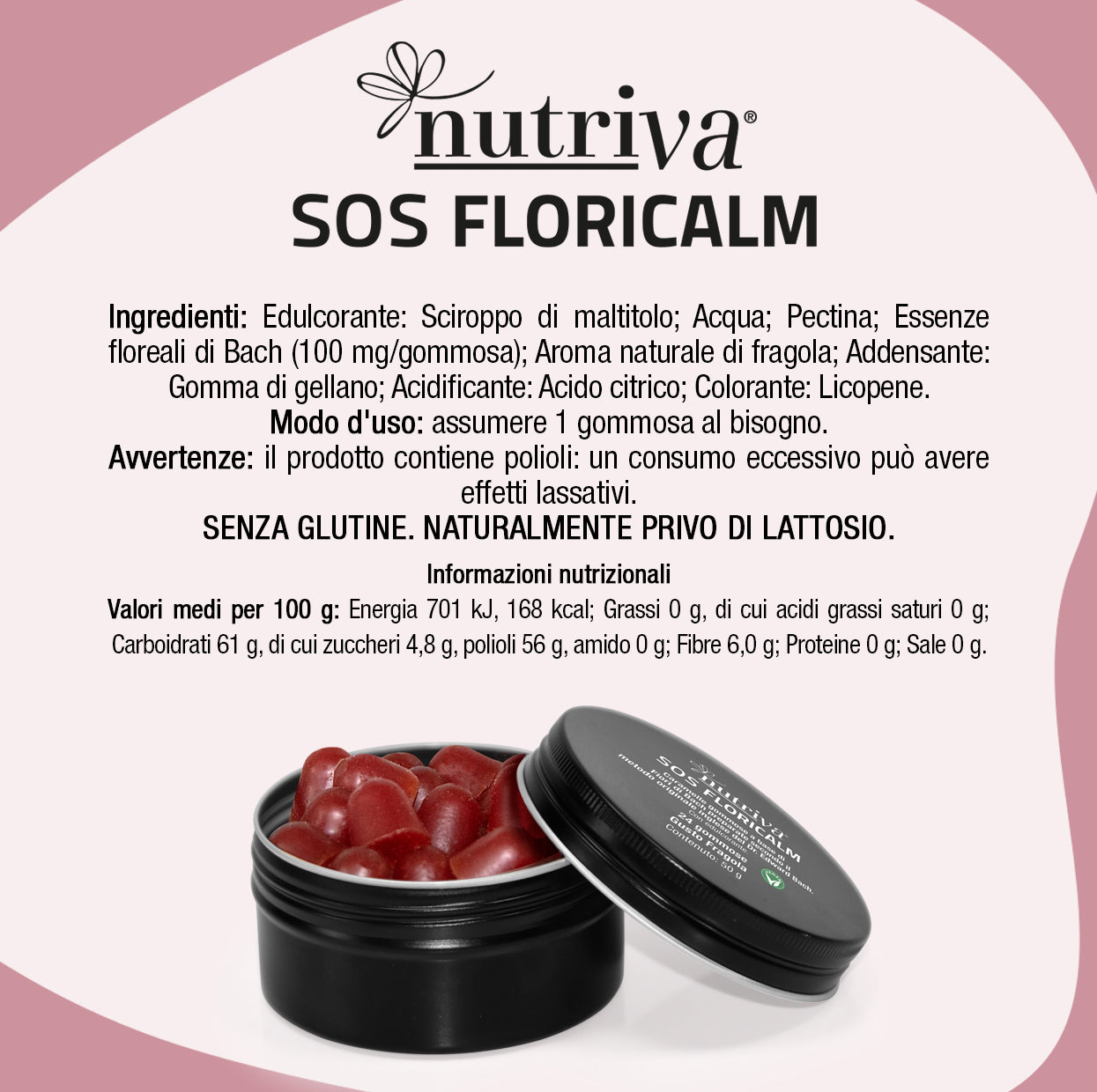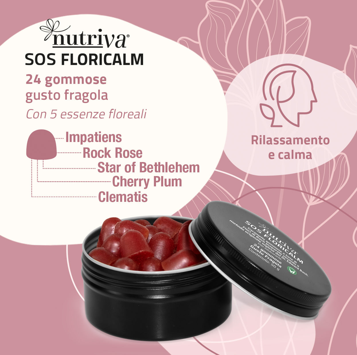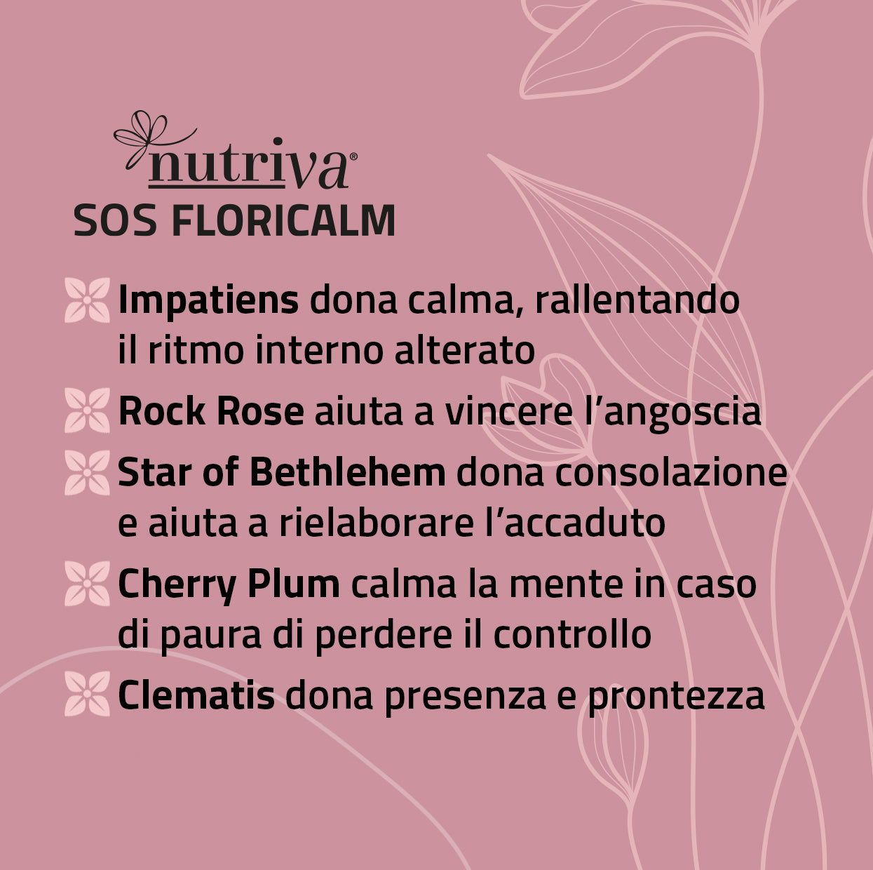 SOS Floricalm è composto dalle cinque essenze floreali scelte dal Dr. Bach per le situazioni di emergenza: Star of Bethlehem, Impatiens, Cherry Plum, Clematis, Rock Rose.