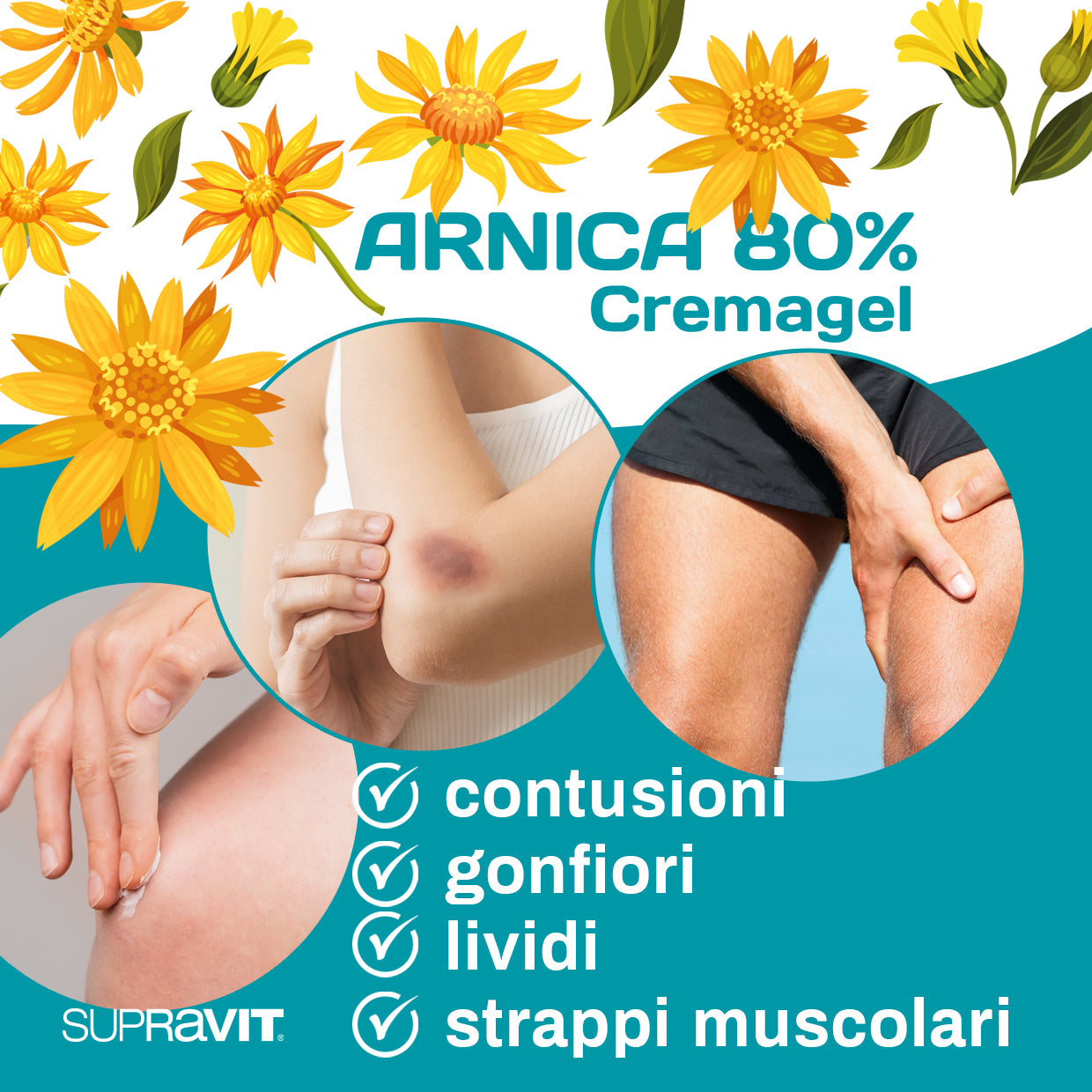 Gel cosmetico con 80% di acqua di Arnica Montana arricchita con olio essenziale di Gaultheria. A rapido assorbimento, non unge, ideale per il massaggio sportivo pre- o post-allenamento.